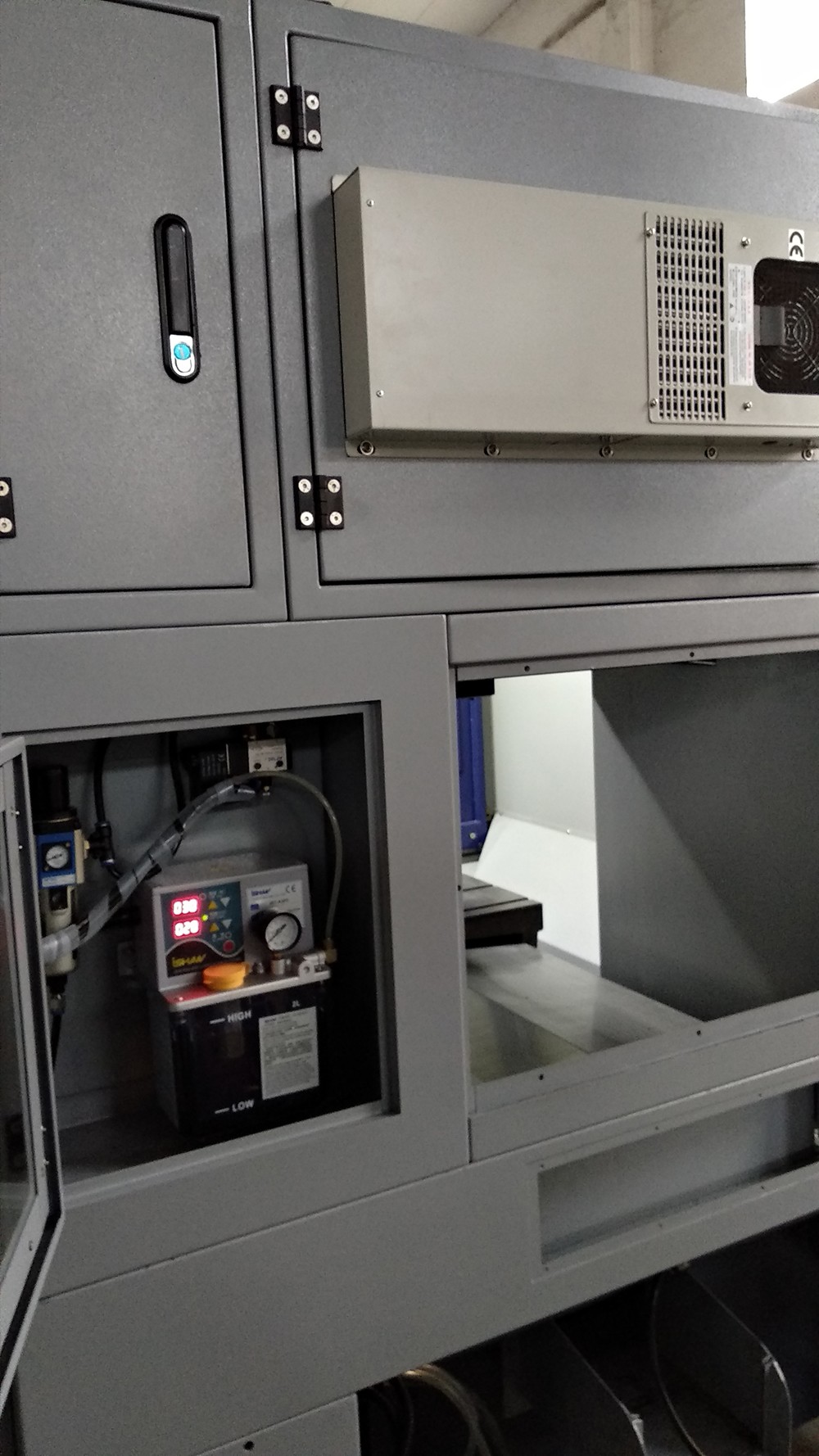 石墨機專用數(shù)控雕銑機是在數(shù)控雕銑機基礎(chǔ)上改造而來的,整機全密封,防塵措施做到極致,避免機床配件、電子原件及環(huán)境遭到石墨粉塵腐蝕和污染。我公司采用自主研發(fā)的水簾式除塵裝置(發(fā)明專利號:ZL200710068794.5),水簾除塵裝置加裝在機床主軸上,加工時在主軸加工區(qū)構(gòu)成圓型水簾瀑布,隔絕粉塵的飛出。特點:濕切加工、內(nèi)設(shè)主軸水簾除塵、整機密封保護、三軸雙伸縮護罩、石墨專用過濾系統(tǒng)。